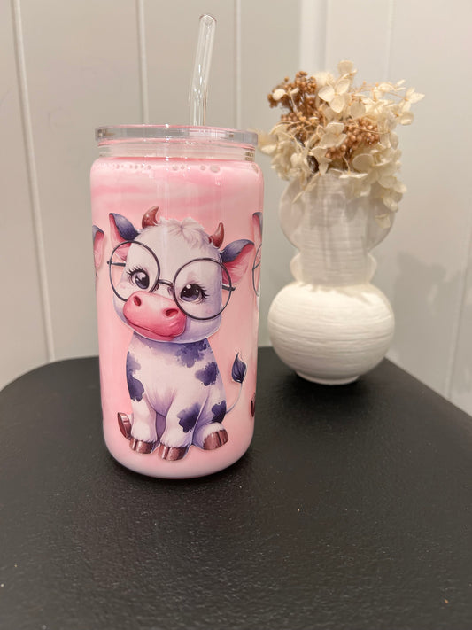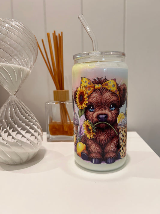 12oz Glass Milkshake ~ Highland cow & Bubble Tea